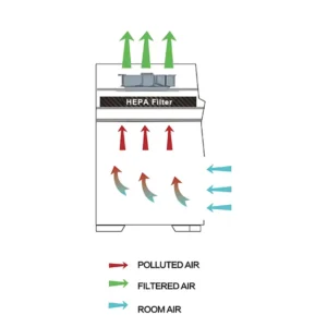 - Perforations at the back wall of the work zone which are designed to eliminate air turbulence and the possibility of dead air corners in the work zone.